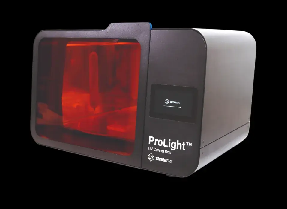 PolyJet ToughONE™, TrueDent™, and transparent materials can all benefit from the ProLight combination cure box and photobleacher.