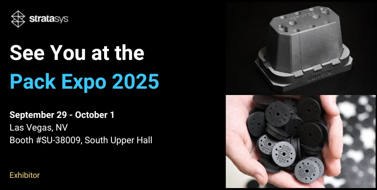 📍 Visit Stratasys in Booth #38009 at PACK EXPO Las Vegas 2025 to discover how additive manufacturing can streamline your packaging operations, enhance flexibility, and reduce costs.