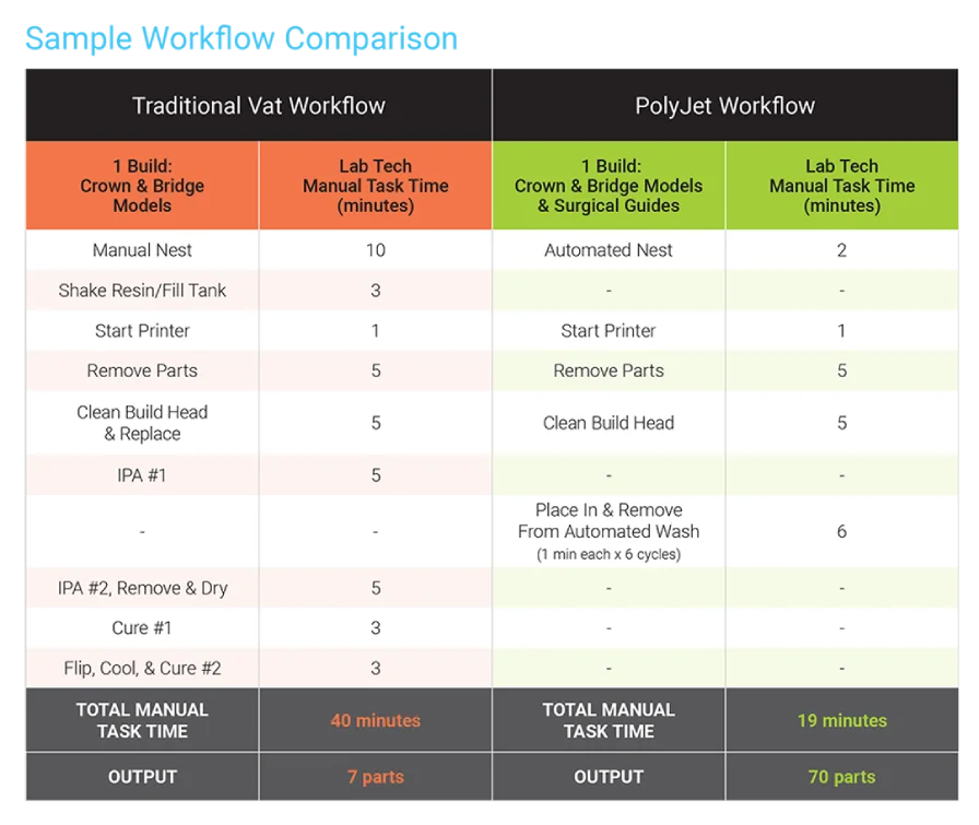 Real workflow timelines and task breakdowns show exactly how PolyJet vs vat 3D printing performs in practical lab scenarios, including how much time can be saved per build—useful if you’re trying to calculate cost per part or make staffing decisions.
